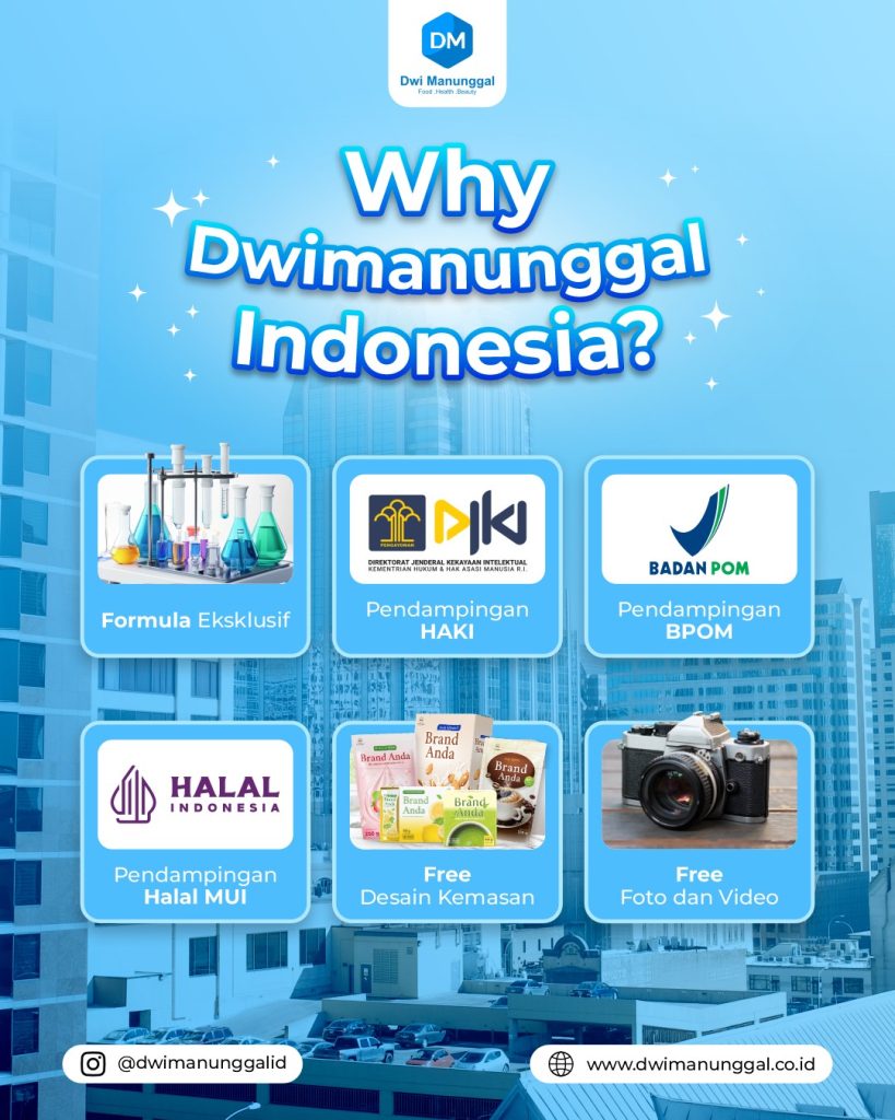 CV DWIMANUNGGAL INDONESIA adalah perusahaan yang bergerak di bidang maklon produk. Didukung oleh tenaga ahli dan profesional di bidangnya.